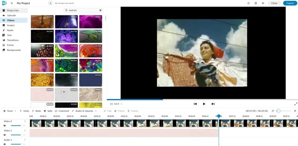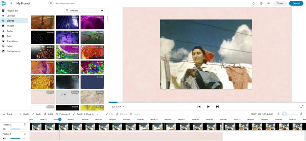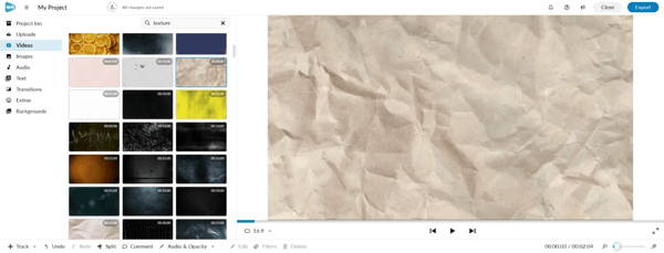 To do this, log into the editor and select "Videos" to search the free video library provided. Type in " texture" and choose a texture to use.