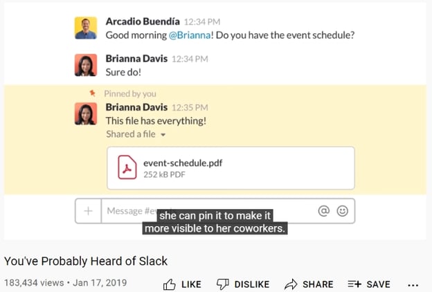 The content in the product demo video of Slack has a storytelling approach. The actor within the video demonstrates the various features of the product interactively. These are a few of the many features that the product demo video of Slack shows: