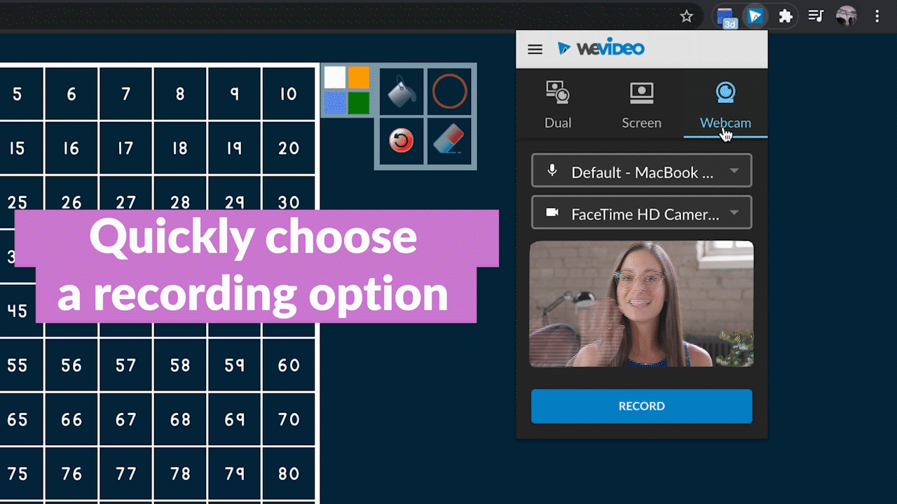 Built right into your Chrome browser, the Quick Recorder lets you record both your screen and webcam to quickly create the video content your students need. Easily create everything from tutorials to instructionals and class messages.