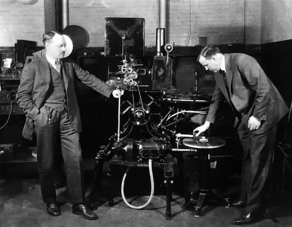 In the early days of film, movies were silent or accompanied by live orchestras. A major challenge for engineers was syncing sound to film. Inventors like Lee De Forest attempted to synchronize audio by converting sound vibrations into etchings on a soft wax disk. However, visuals and audio were recorded separately and at different speeds, so they often fell out of sync.
