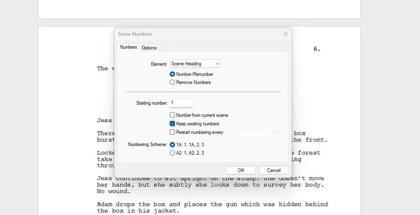 The first step is to ensure the script has numbered scenes. If you're using professional scriptwriting software like Final Draft or Celtx, there is a setting to number each scene automatically. Remember, a change in filming location dictates a new scene. This includes scenarios like filming inside a vehicle, the vehicle stopping, and then moving the camera outside.