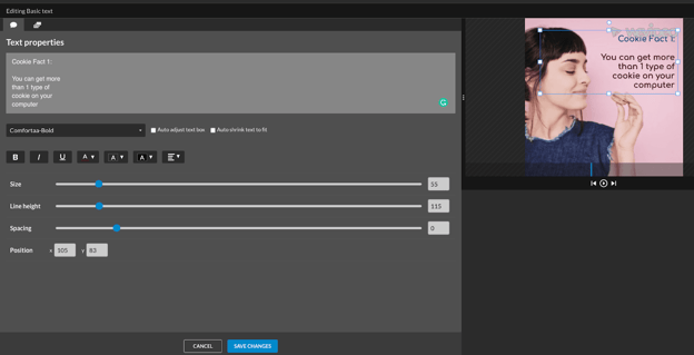 You can change the background color of your video to match your brand or business, change fonts for titles, subtitles, and captions that are relevant to the type of content you're creating, and more!