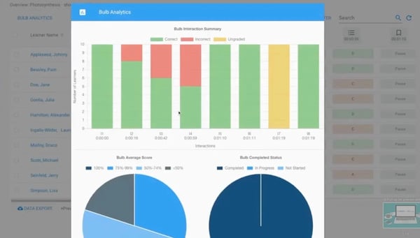 When you create interactive video content in PlayPosit, the gradebook offers access to advanced learner analytics that provide individual and overall learner understanding and deficiencies through question-by-question breakdowns of learner performance.