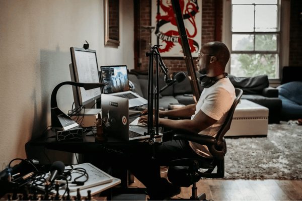 Finally, you’ll need headphones. Unless you have an external audio producer monitoring the sound, it’s crucial to wear headphones while recording. This allows you to spot potential issues in real time, such as crackles, background noise, or rustling from clothing, which can distract listeners. Even if it’s just you or one guest, wearing headphones can help catch significant audio problems.