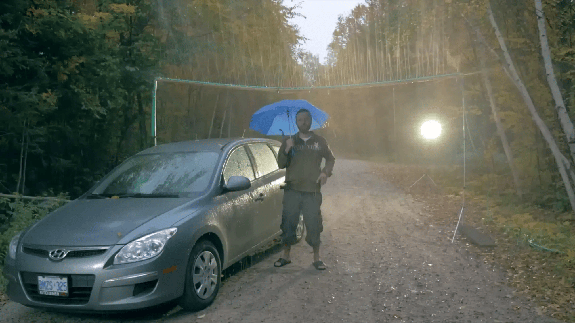 Filming in the rain is already challenging. To make the rain visible on screen, you'll need an artificial rain rig and powerful backlighting. And let’s not forget a connection to the water mains to supply the rig, which might cost more than that new camera you've been eyeing.