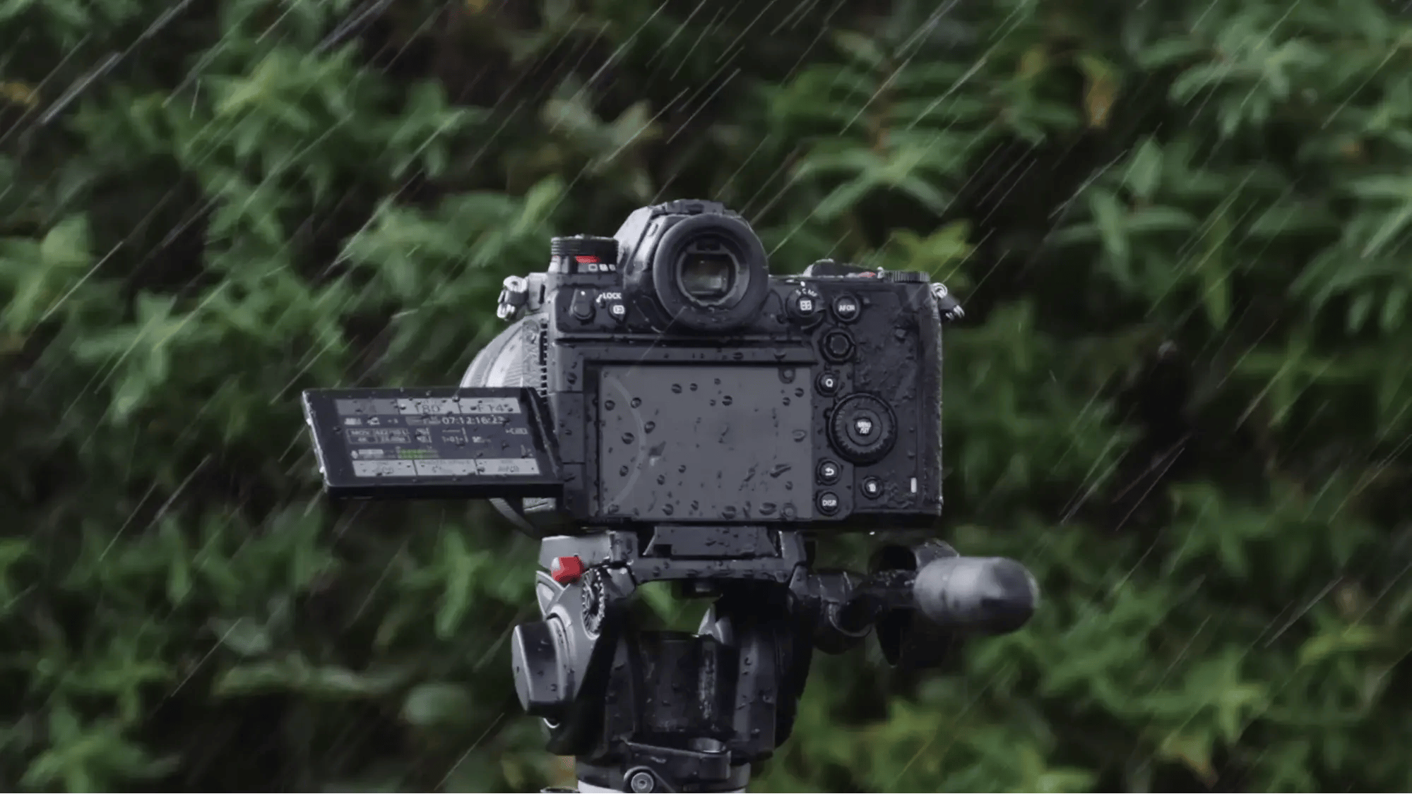 It shouldn't be an issue if the camera gets wet but only collects a few droplets on the LCD screen or microphone ports. However, if you’re filming under artificial rain, where the volume and intensity of the water are far more significant, your camera’s weatherproofing may not hold up.