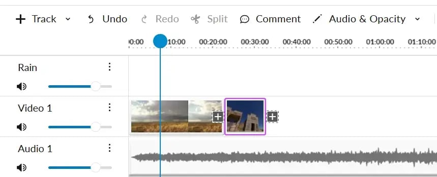 This lets you quickly enhance your presentation with realistic rain effects within WeVideo’s editor.