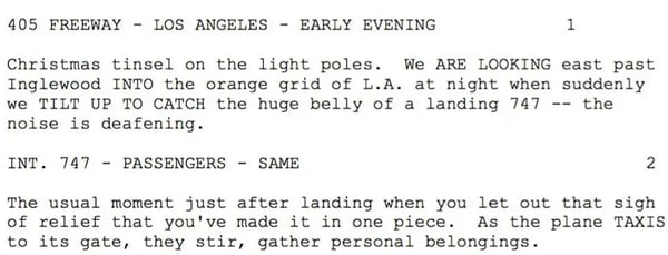 Before anything is typed, it's important to understand that screenplays are broken into scenes. And every screenplay needs the scene heading, or the slug line. This heading is a brief description that sets the upcoming scene. It includes: